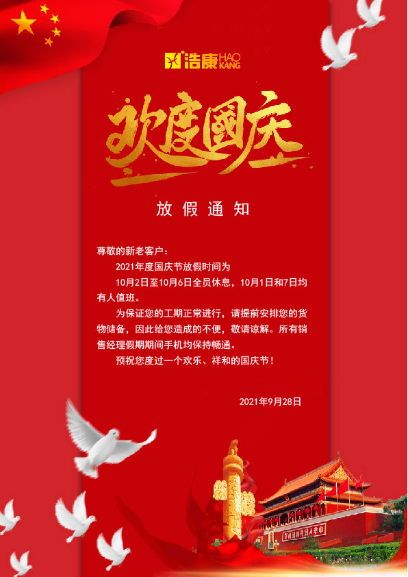 J9直营集团国庆节放假通知